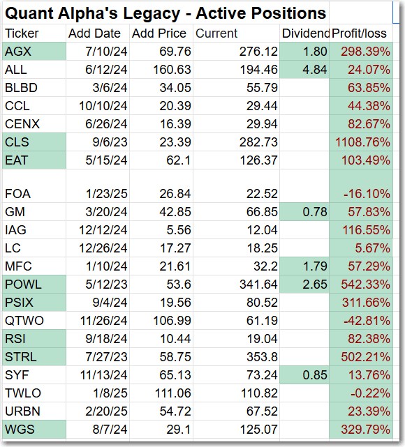 This week’s update, if any, has been sent to the paid subscribers. Last week there there was one Add and one Removal.