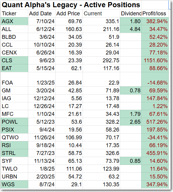 The Quant Alpha’s – Legacy Portfolio maintained its over 240% return since April 2023, in a classic Position Trading Portfolio implementation.