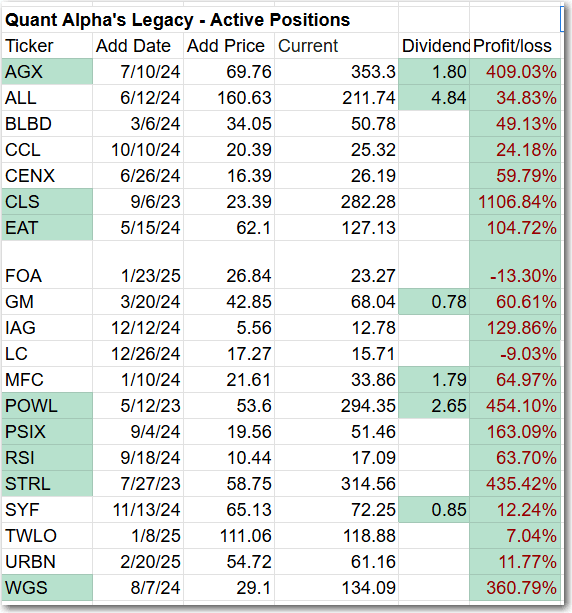 The Quant Alpha’s – Legacy Portfolio maintained its over 230% return since April 2023, in a classic Position Trading Portfolio implementation.
