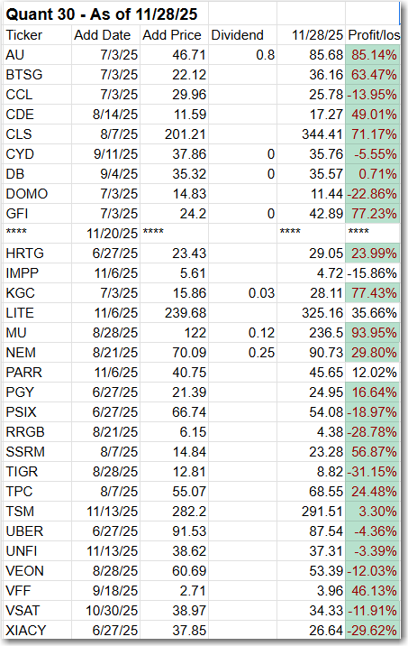 The Quant 30 Portfolio managed to close ahead of the benchmark once again. It is up 14% since it began on June 27, 2025.