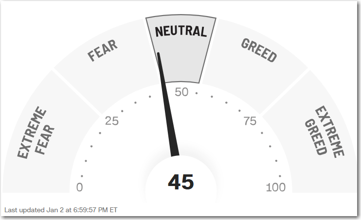 The Fear and Greed Index starts the year off in the Neutral quadrant.