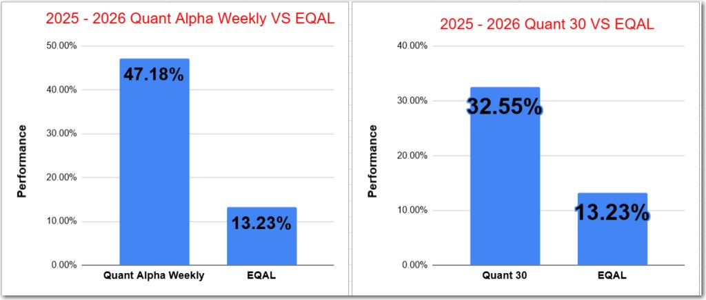 The Quant Alpha Weekly Portfolio remains ahead of its benchmark. Up over 47% since it began on June 27, 2025.