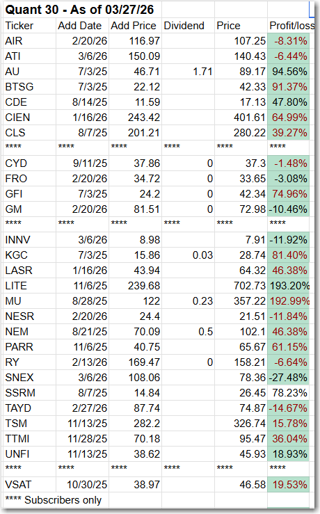 Note: Choose between free and paid subscription levels. Paid subscribers enjoy instant access to weekly Portfolio updates upon release. Free subscribers access Portfolio updates after a three-week delay. Want timely access to the new Adds/Removes? Click here.